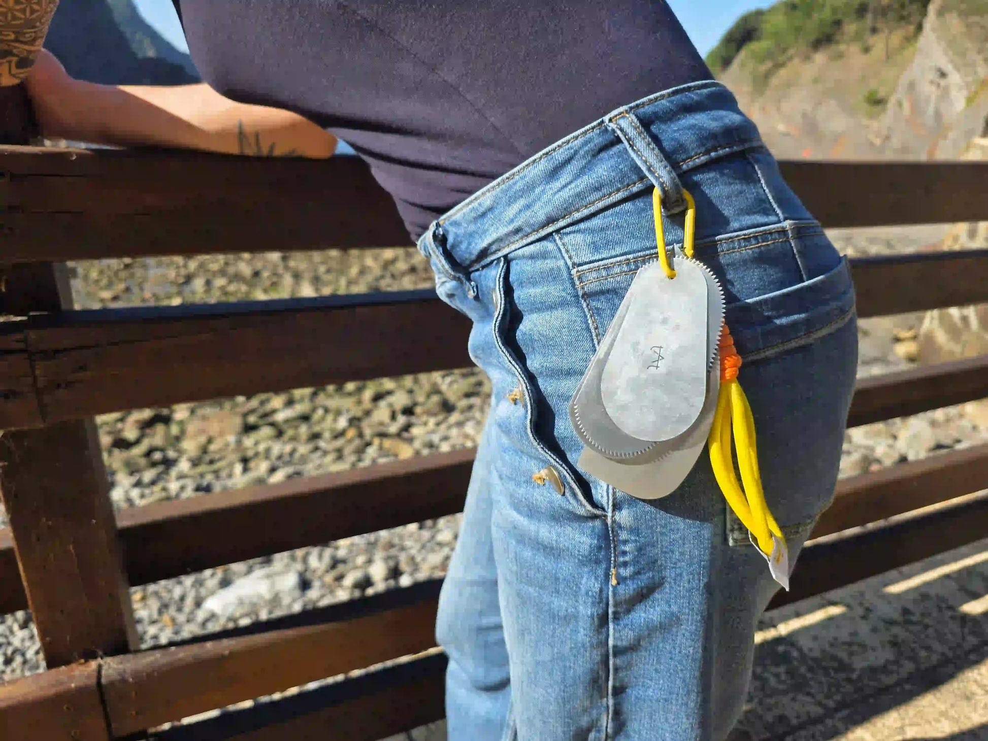 Después de su uso, podrás volver a introducir el raspador de arcilla en el "llavero", recomendando siempre limpiarlo con agua antes de guardarlo.