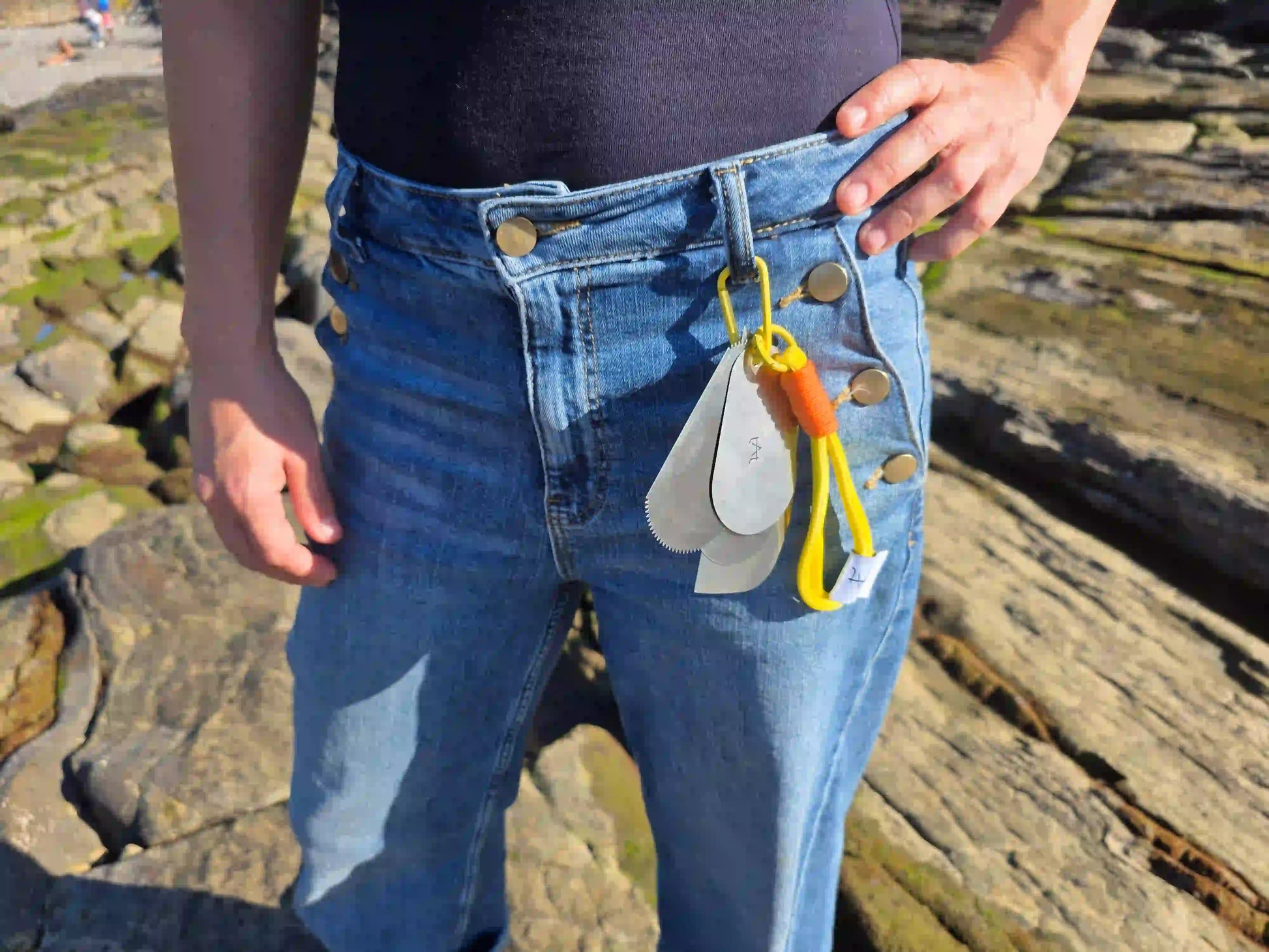 Raspador para cerámica en en acero inoxidable AISI 316 de alta calidad. Se trata de un conjunto de raspadores unidos en un colgante práctico que puedes colgar en tu taller. Abre el pequeño mosquetón y escoge el raspador de barro que vayas a utilizar.